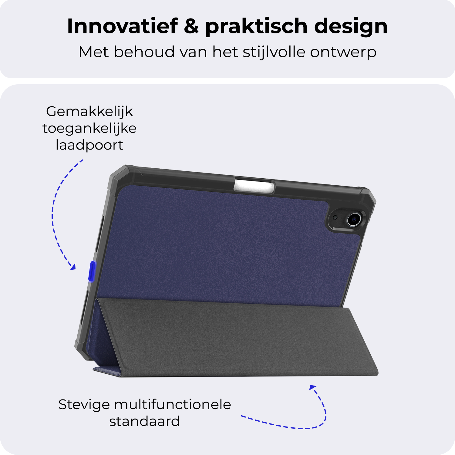 Maak je iPad Mini 7 compleet met deze functionele en stijlvolle Trifold Bookcase Hoes - donkerblauwe. **Bestel nu en ervaar de perfecte balans tussen bescherming en gebruiksgemak!**