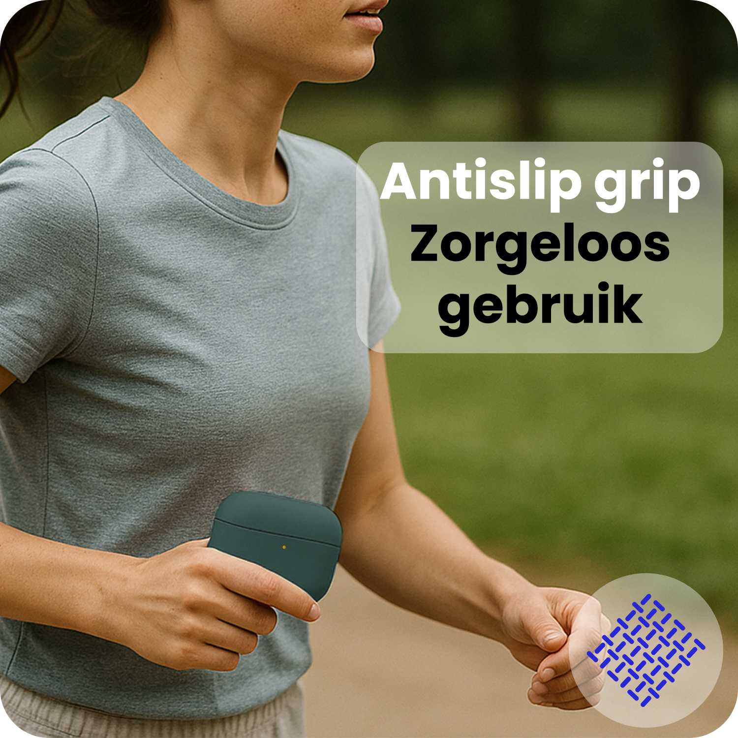 Dankzij de zachte, matte afwerking ligt je AirPods Pro 3 stevig in de hand en glijdt het minder snel uit je vingers. Dit biedt extra zekerheid en gebruiksgemak.