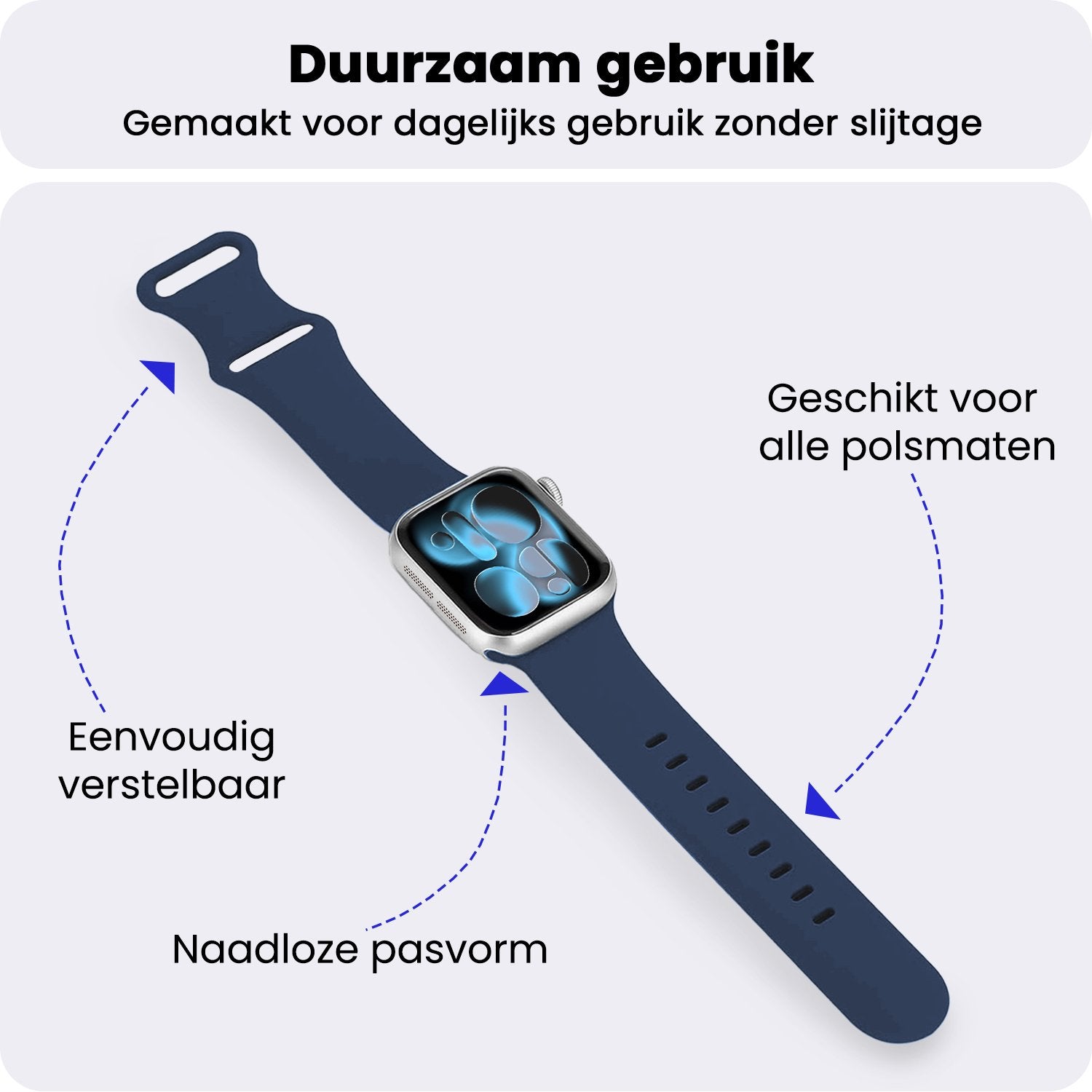 Apple Watch 1, 2, 3, 4, 5, 6, 7, 8, 9, 10, 11, SE - 42/44/45/46 mm Bandje Siliconen met verstelbare polsband - Donkerblauw