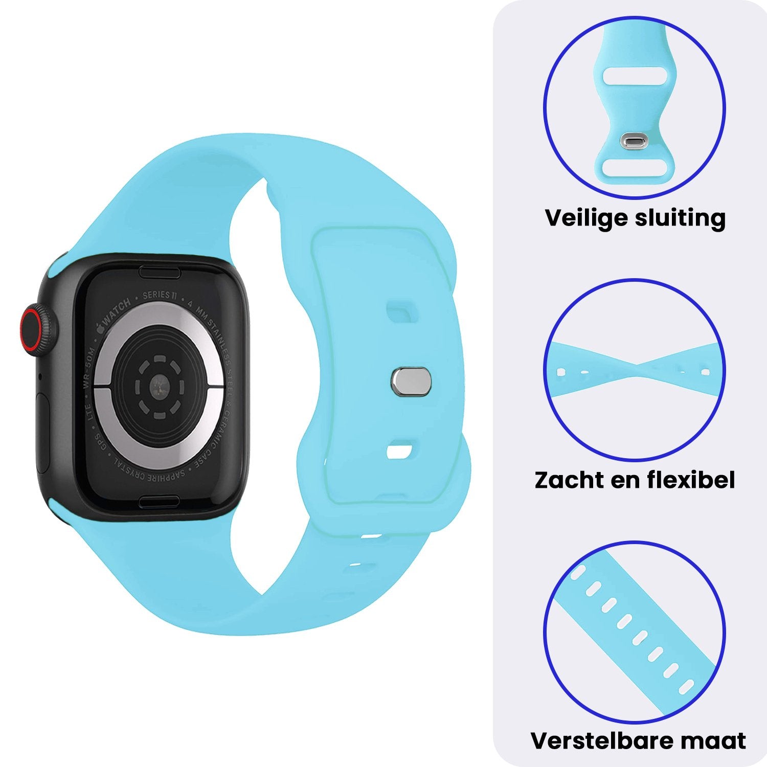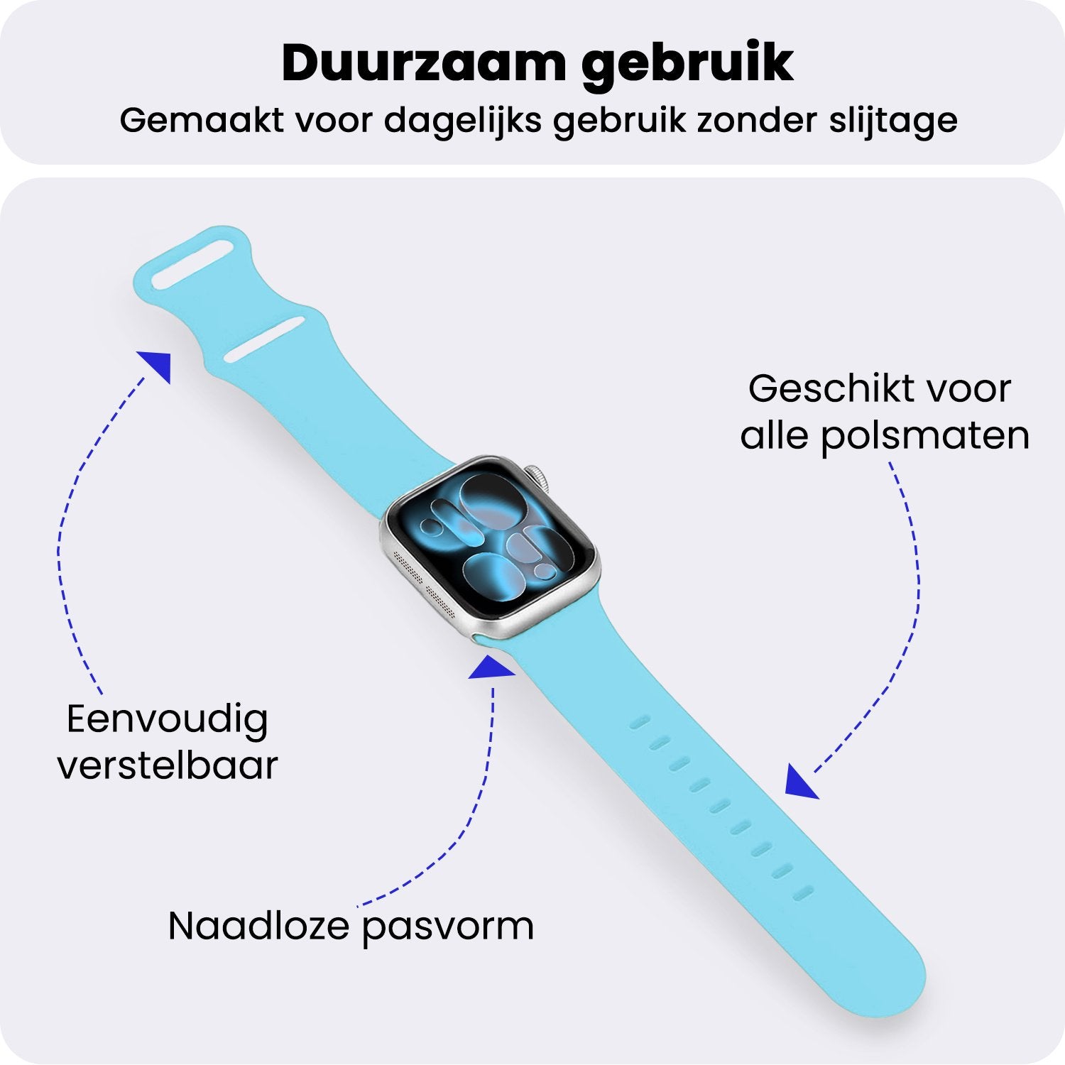Apple Watch 1, 2, 3, 4, 5, 6, 7, 8, 9, 10, 11, SE - 42/44/45/46 mm Bandje Siliconen met verstelbare polsband - Lichtblauw