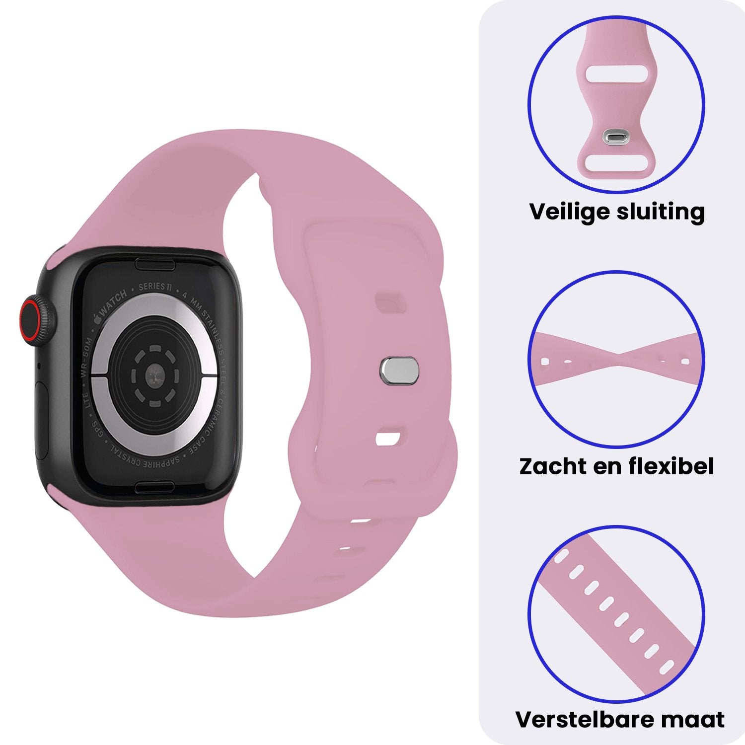 Elegant en functioneel siliconen horlogebandje geschikt voor de Apple Watch 1, 2, 3, 4, 5, 6, 7, 8, 9, 10, 11, SE - 42/44/45/46 mm
