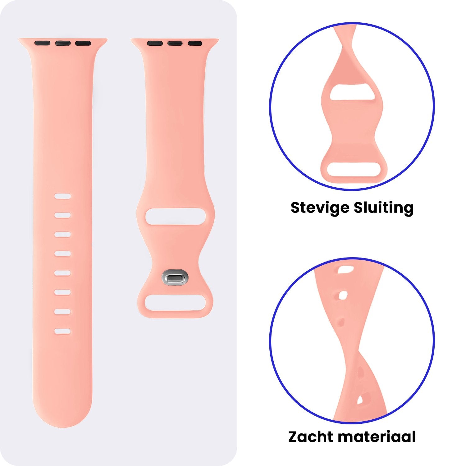 Apple Watch 1, 2, 3, 4, 5, 6, 7, 8, 9, 10, 11, SE - 42/44/45/46 mm Bandje Siliconen met verstelbare polsband - Oud Roze