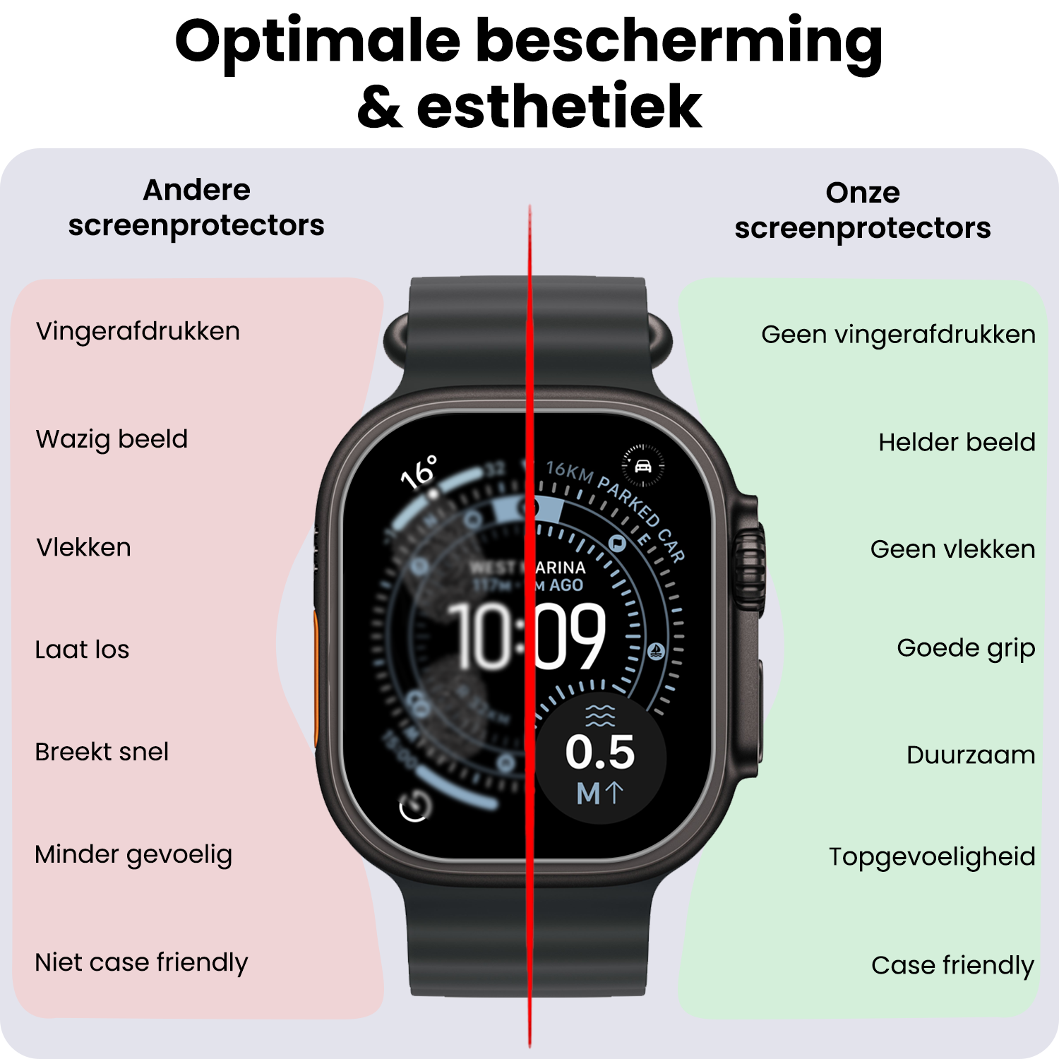 Het dunne en transparante ontwerp zorgt ervoor dat de helderheid en kleuren van je smartwatch-scherm niet worden beïnvloed. Hierdoor blijft de beeldkwaliteit optimaal.