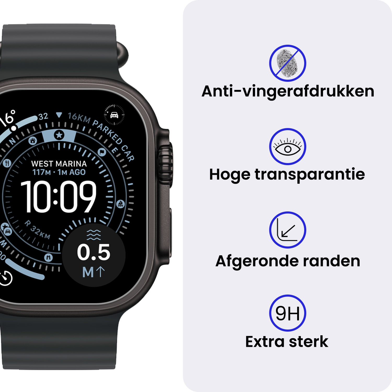 Deze screenprotector vormt een extra verdedigingslaag op het scherm van je Apple Watch Ultra 3 (49 mm), waardoor het beschermd blijft tegen sleutels, stof en andere scherpe voorwerpen.