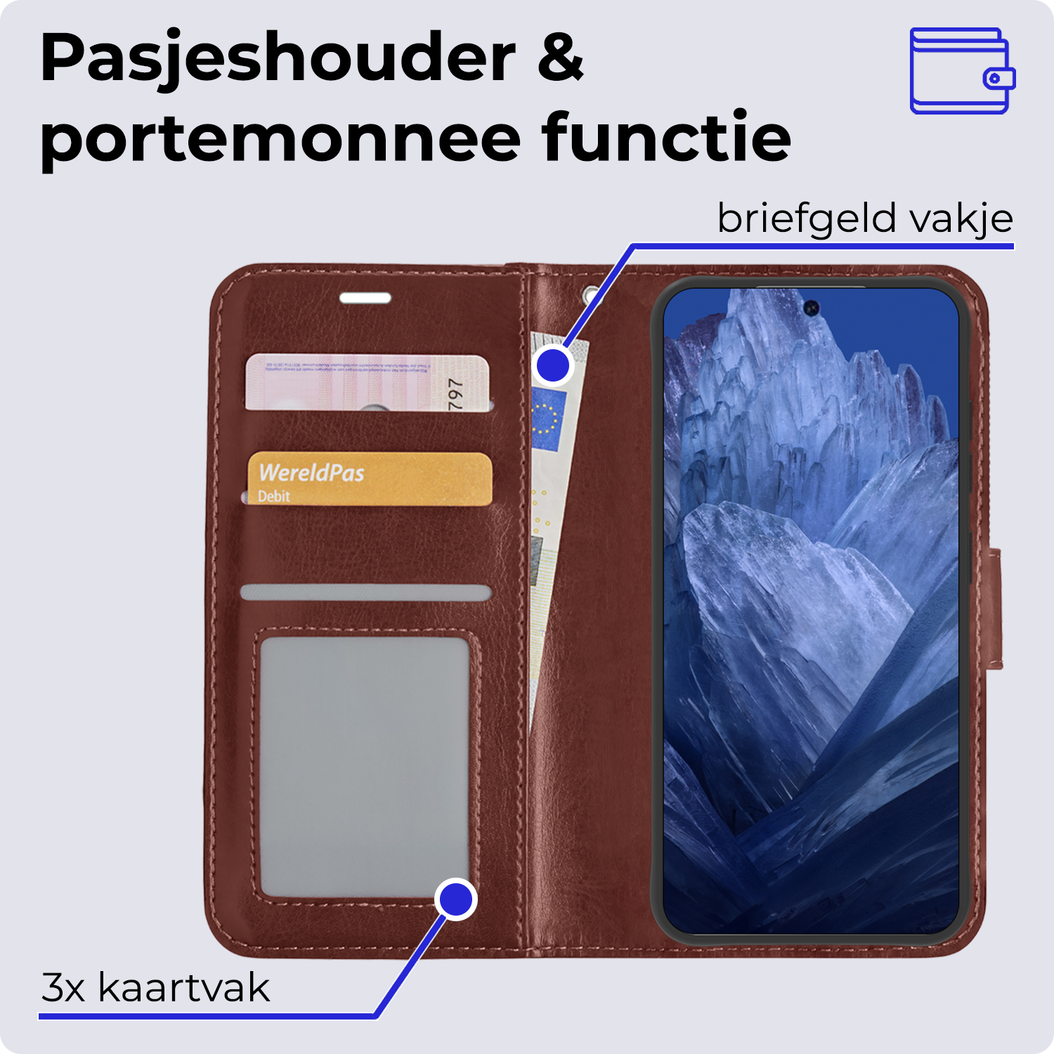 - Ruimte voor pasjes en briefgeld