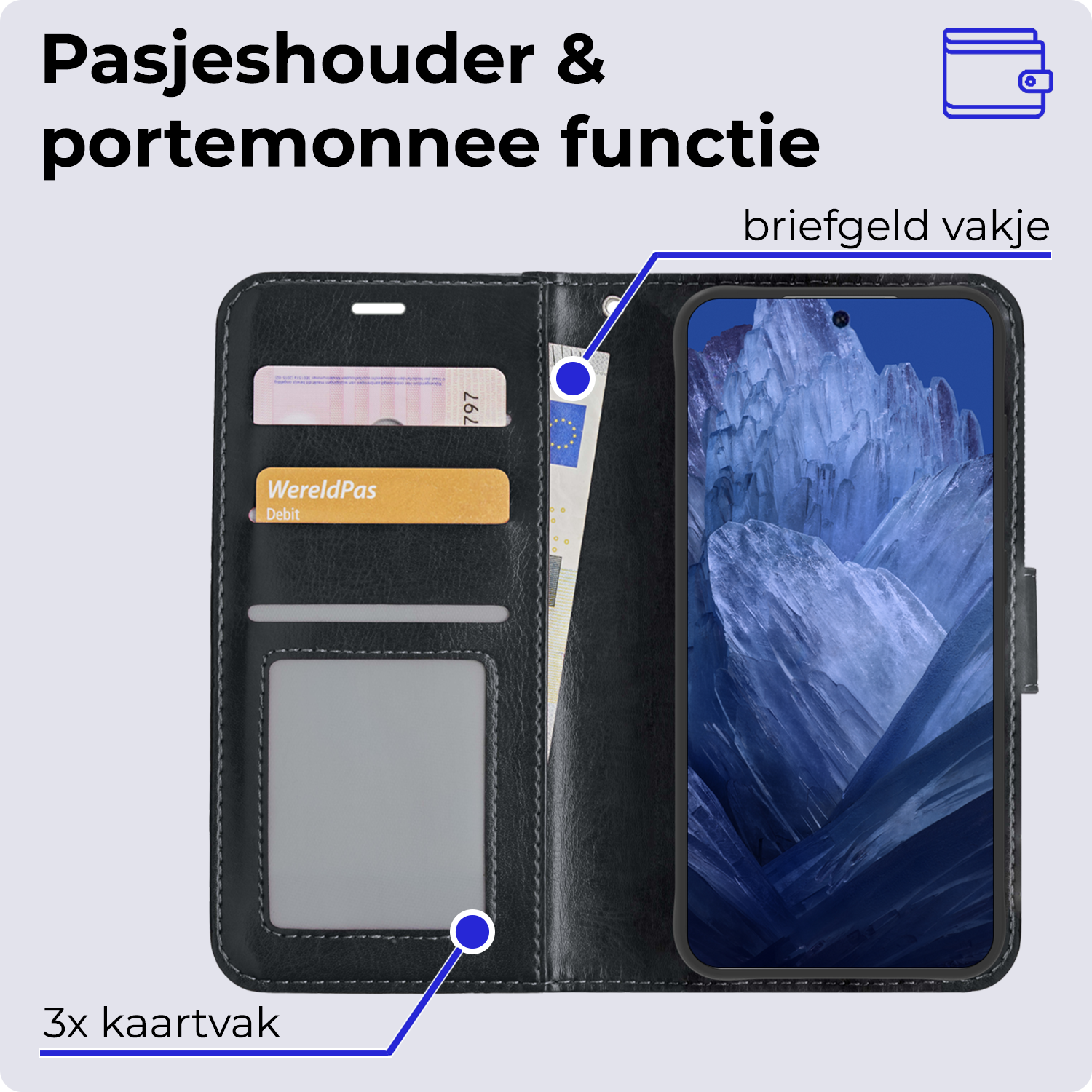 Google Pixel 8a Hoesje Bookcase Cover met Kaarthouder - Zwart