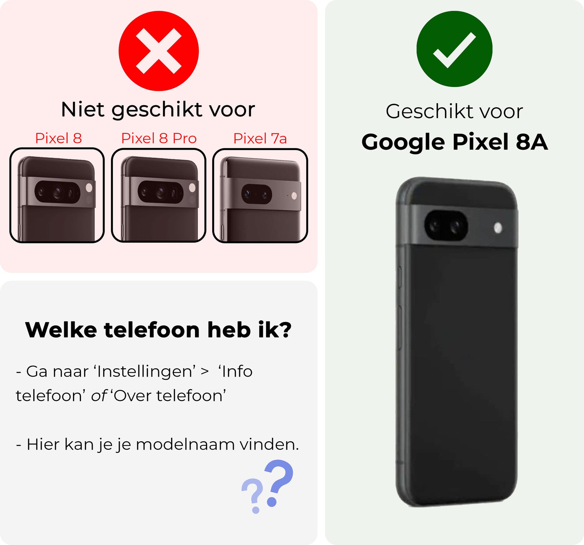 Dit hoesje is verkrijgbaar in verschillende kleuren, zodat je eenvoudig een stijl kiest die bij je past. Ga voor een neutrale tint voor een subtiele look of kies een opvallende kleur om je Google Pixel 8a een persoonlijke touch te geven. Voor wie het originele design van de telefoon wil behouden, is er ook een transparante variant beschikbaar.