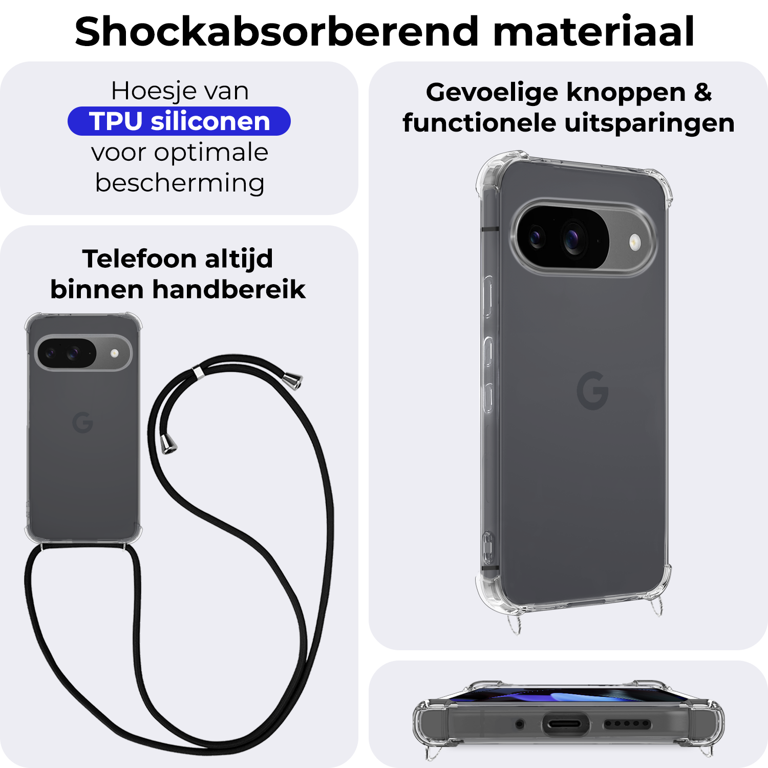 Google Pixel 9 Hoesje met Koord Backcover Shockproof - Transparant