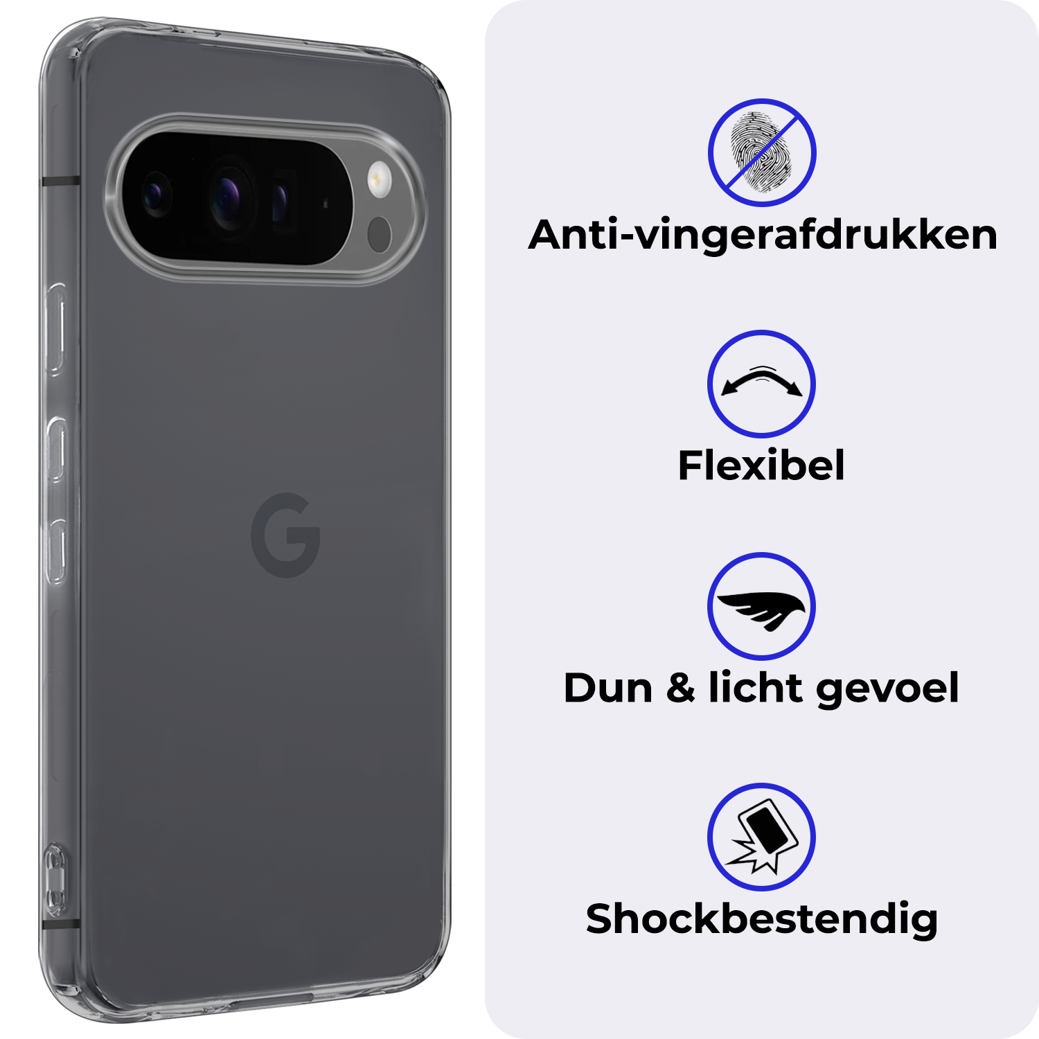 Dit hoesje is verkrijgbaar in verschillende kleuren, zodat je eenvoudig een stijl kiest die bij je past. Ga voor een neutrale tint voor een subtiele look of kies een opvallende kleur om je Google Pixel 9 Pro XL een persoonlijke touch te geven. Voor wie het originele design van de telefoon wil behouden, is er ook een transparante variant beschikbaar.