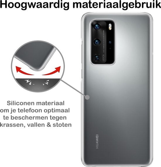 Dit siliconen hoesje voor de Huawei P40 Pro is gemaakt van flexibel en schokabsorberend TPU-materiaal, waardoor het je toestel optimaal beschermt tegen vallen en stoten. De verhoogde randen rond het scherm en de camera voorkomen directe contactschade bij neerleggen op vlakke oppervlakken. Bovendien is het siliconen materiaal scheur- en slijtvast, wat een lange levensduur garandeert.