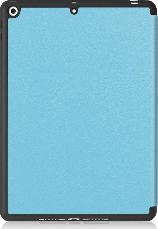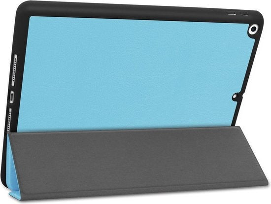 Maak je iPad 10.2 2019 compleet met deze functionele en stijlvolle Trifold Bookcase Hoes - lichtblauwe. **Bestel nu en ervaar de perfecte balans tussen bescherming en gebruiksgemak!**