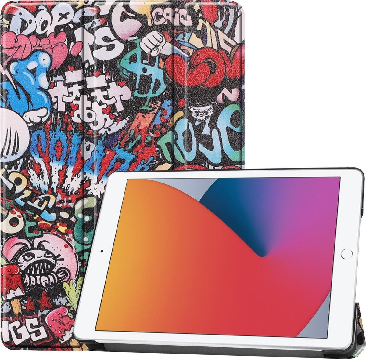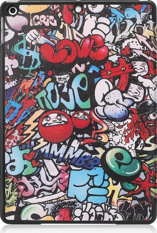 Maak je iPad 10.2 2020 compleet met deze functionele en stijlvolle Trifold Bookcase Hoes - graffity-patroon. **Bestel nu en ervaar de perfecte balans tussen bescherming en gebruiksgemak!**