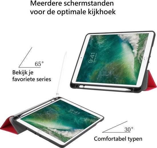 Maak je iPad Air 1/2 / Pro 9.7 / 2017/2018 compleet met deze functionele en stijlvolle Trifold Bookcase Hoes - rode. **Bestel nu en ervaar de perfecte balans tussen bescherming en gebruiksgemak!**