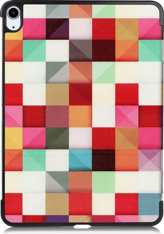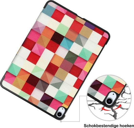 Maak je iPad Air 2020 compleet met deze functionele en stijlvolle Trifold Bookcase Hoes - blokken-patroon. **Bestel nu en ervaar de perfecte balans tussen bescherming en gebruiksgemak!**