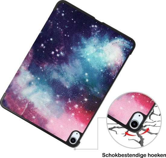 Maak je iPad Air 2020 compleet met deze functionele en stijlvolle Trifold Bookcase Hoes - galaxy-patroon. **Bestel nu en ervaar de perfecte balans tussen bescherming en gebruiksgemak!**