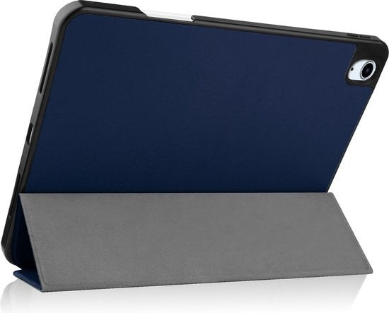 Maak je iPad Air 2020 compleet met deze functionele en stijlvolle Trifold Bookcase Hoes - donkerblauwe. **Bestel nu en ervaar de perfecte balans tussen bescherming en gebruiksgemak!**