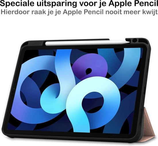 Maak je iPad Air 2020 compleet met deze functionele en stijlvolle Trifold Bookcase Hoes - rosé gouden. **Bestel nu en ervaar de perfecte balans tussen bescherming en gebruiksgemak!**