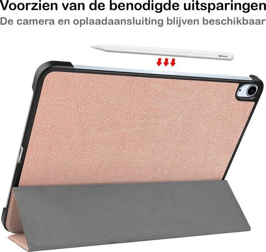 Maak je iPad Air 2020 compleet met deze functionele en stijlvolle Trifold Bookcase Hoes - rosé gouden. **Bestel nu en ervaar de perfecte balans tussen bescherming en gebruiksgemak!**