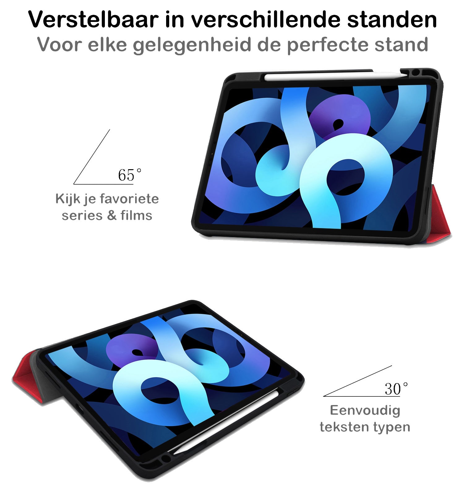 iPad Air 2022 Trifold Bookcase Hoes met Penhouder voor Apple Pen - Rood