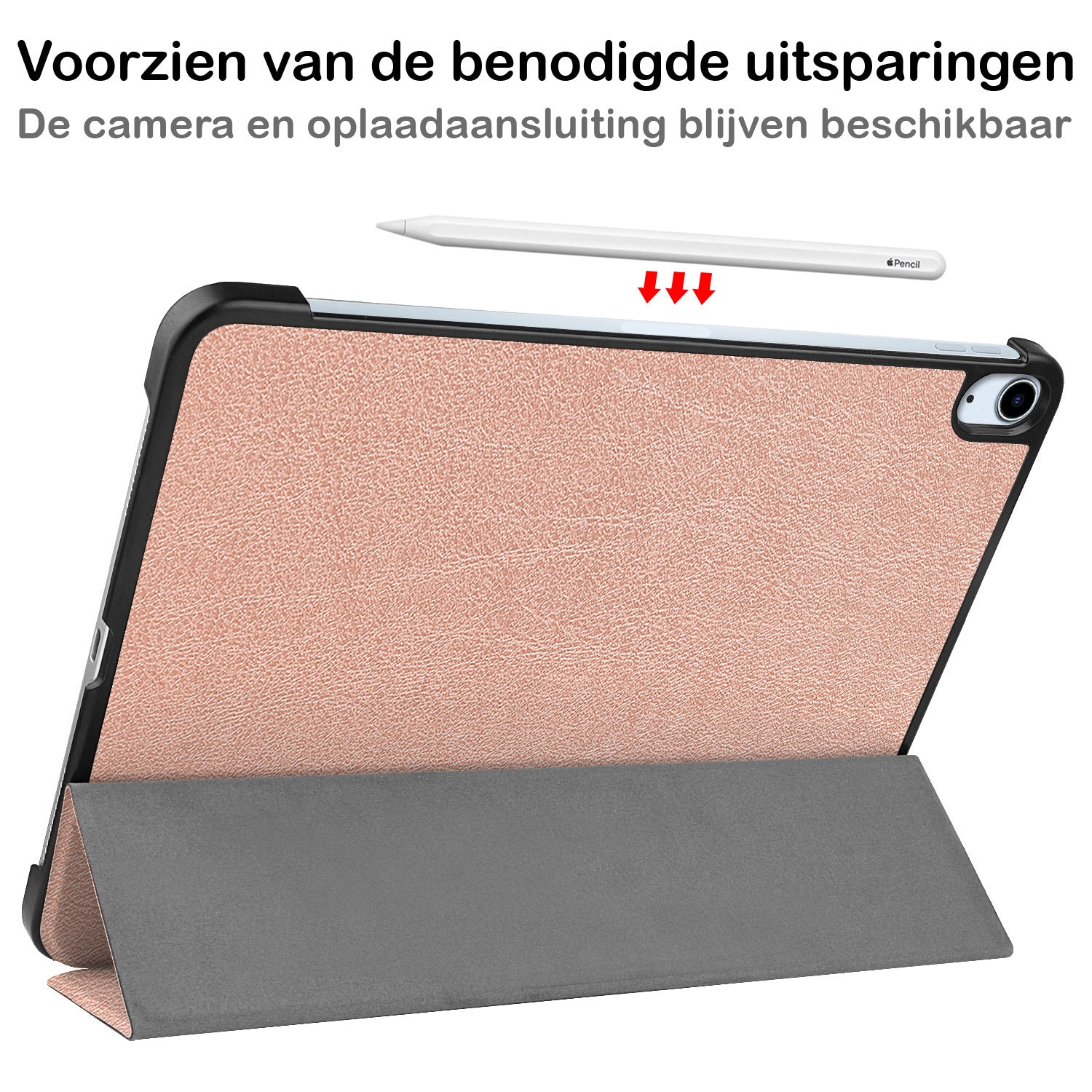 Maak je iPad Air 2022 compleet met deze functionele en stijlvolle Trifold Bookcase Hoes - rosé gouden. **Bestel nu en ervaar de perfecte balans tussen bescherming en gebruiksgemak!**