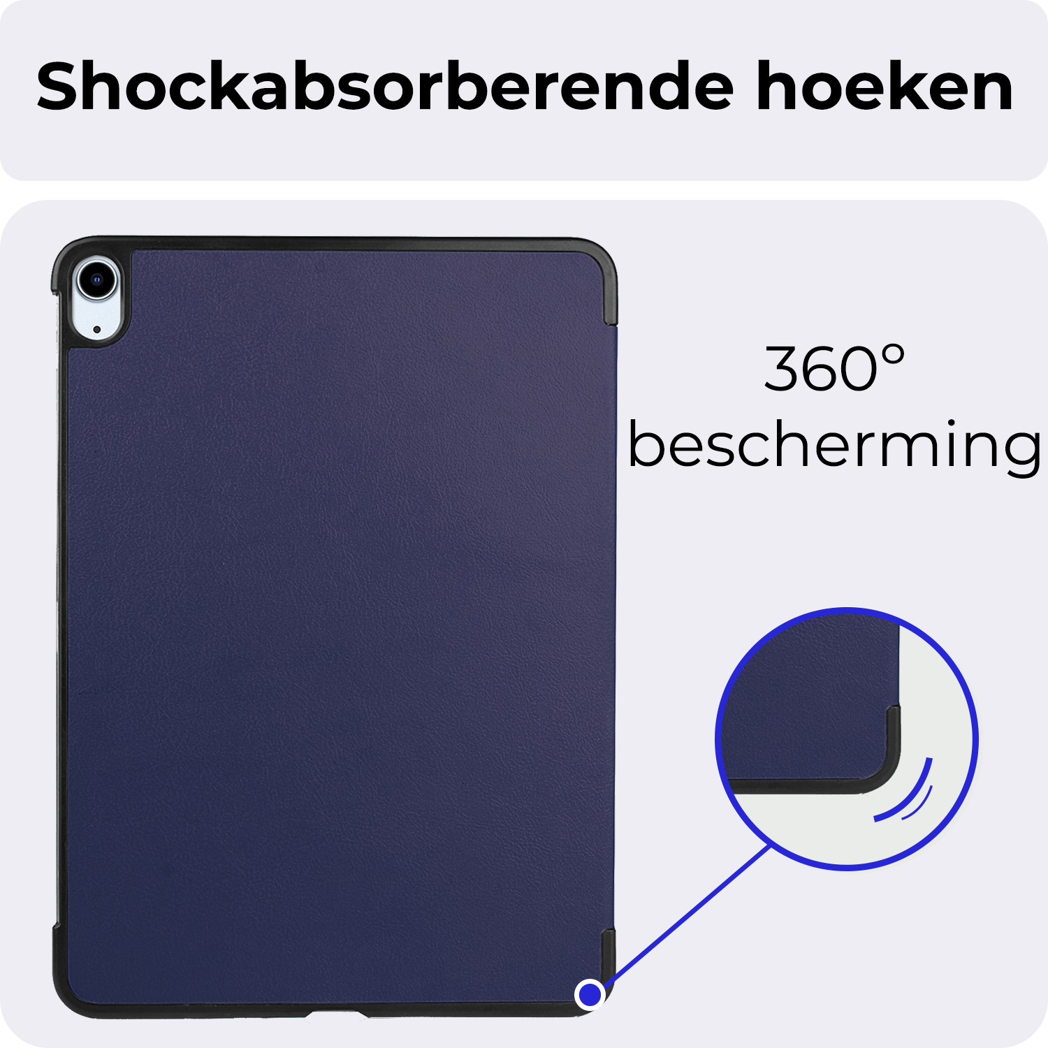 Maak je iPad Air 2024 / 2025 (11 inch) compleet met deze functionele en stijlvolle Trifold Bookcase Hoes - donkerblauwe. **Bestel nu en ervaar de perfecte balans tussen bescherming en gebruiksgemak!**