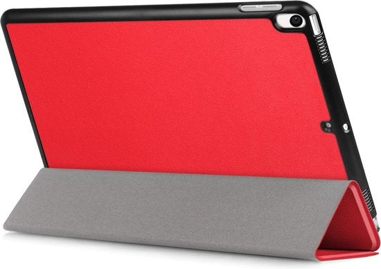 Maak je iPad Air 3 / Pro 10.5 (2017) compleet met deze functionele en stijlvolle Trifold Bookcase Hoes - rode. **Bestel nu en ervaar de perfecte balans tussen bescherming en gebruiksgemak!**