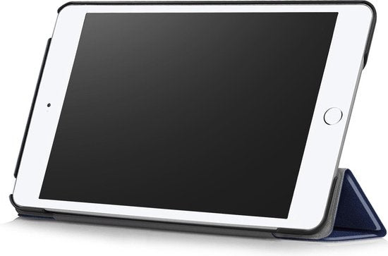 Maak je iPad Mini 5 compleet met deze functionele en stijlvolle Trifold Bookcase Hoes - donkerblauwe. **Bestel nu en ervaar de perfecte balans tussen bescherming en gebruiksgemak!**