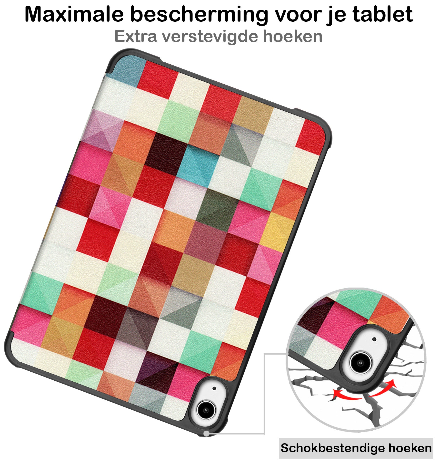 Maak je iPad Mini 6 compleet met deze functionele en stijlvolle Trifold Bookcase Hoes - blokken-patroon. **Bestel nu en ervaar de perfecte balans tussen bescherming en gebruiksgemak!**