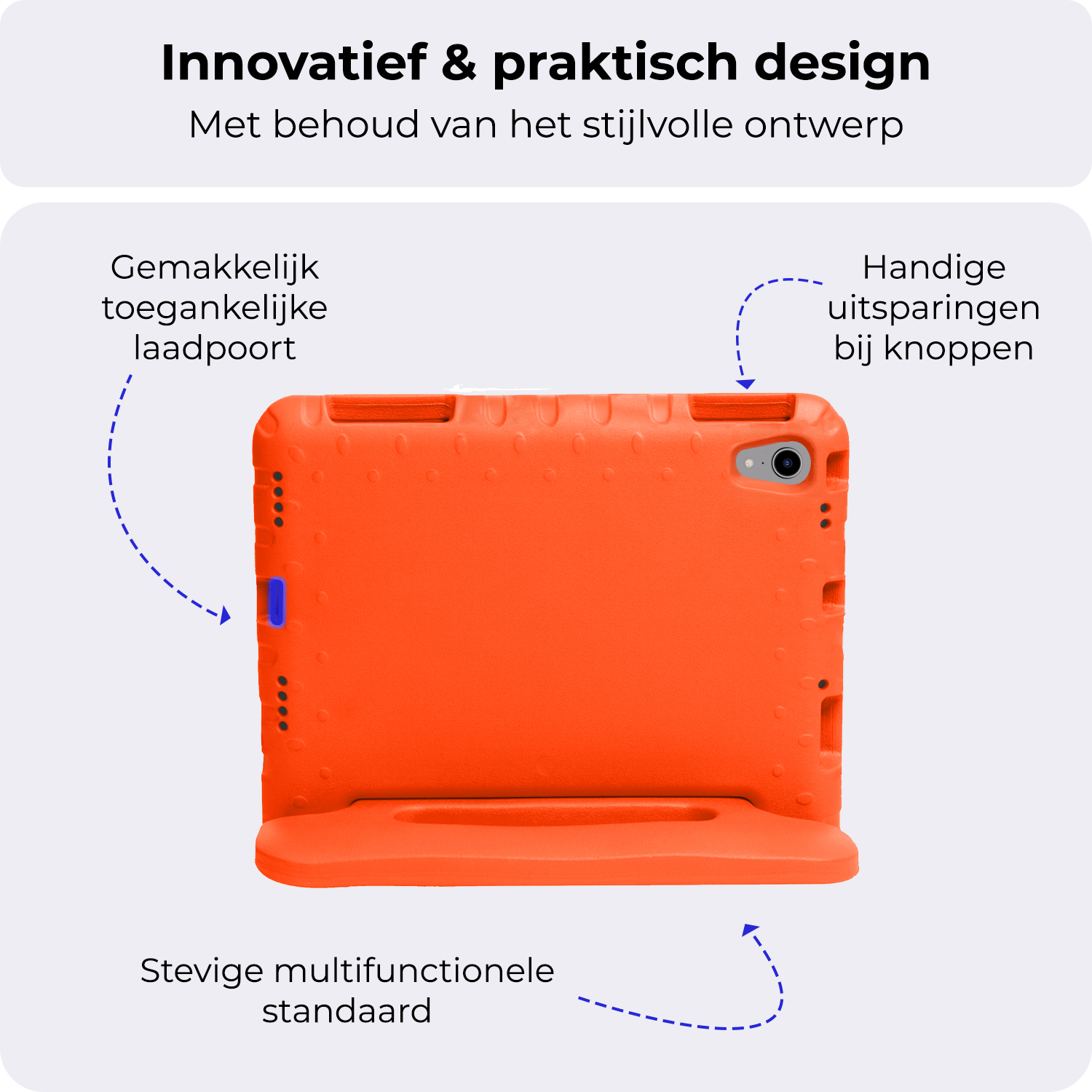 Deze tablethoes is gemaakt van stevig en schokabsorberend materiaal dat de impact van vallen en stoten vermindert. Hierdoor blijft je iPad Mini 7 beschermd, zelfs wanneer kinderen de tablet laten vallen of ermee rondlopen.