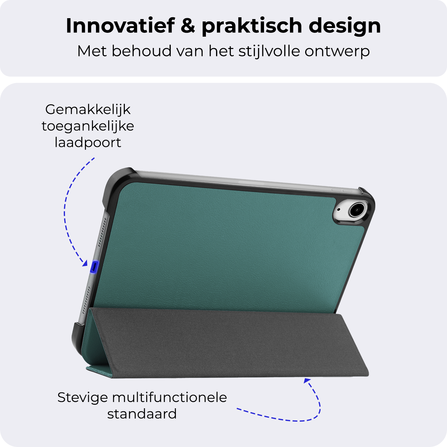 Maak je iPad Mini 7 compleet met deze functionele en stijlvolle Trifold Bookcase Hoes - donkergroene. **Bestel nu en ervaar de perfecte balans tussen bescherming en gebruiksgemak!**