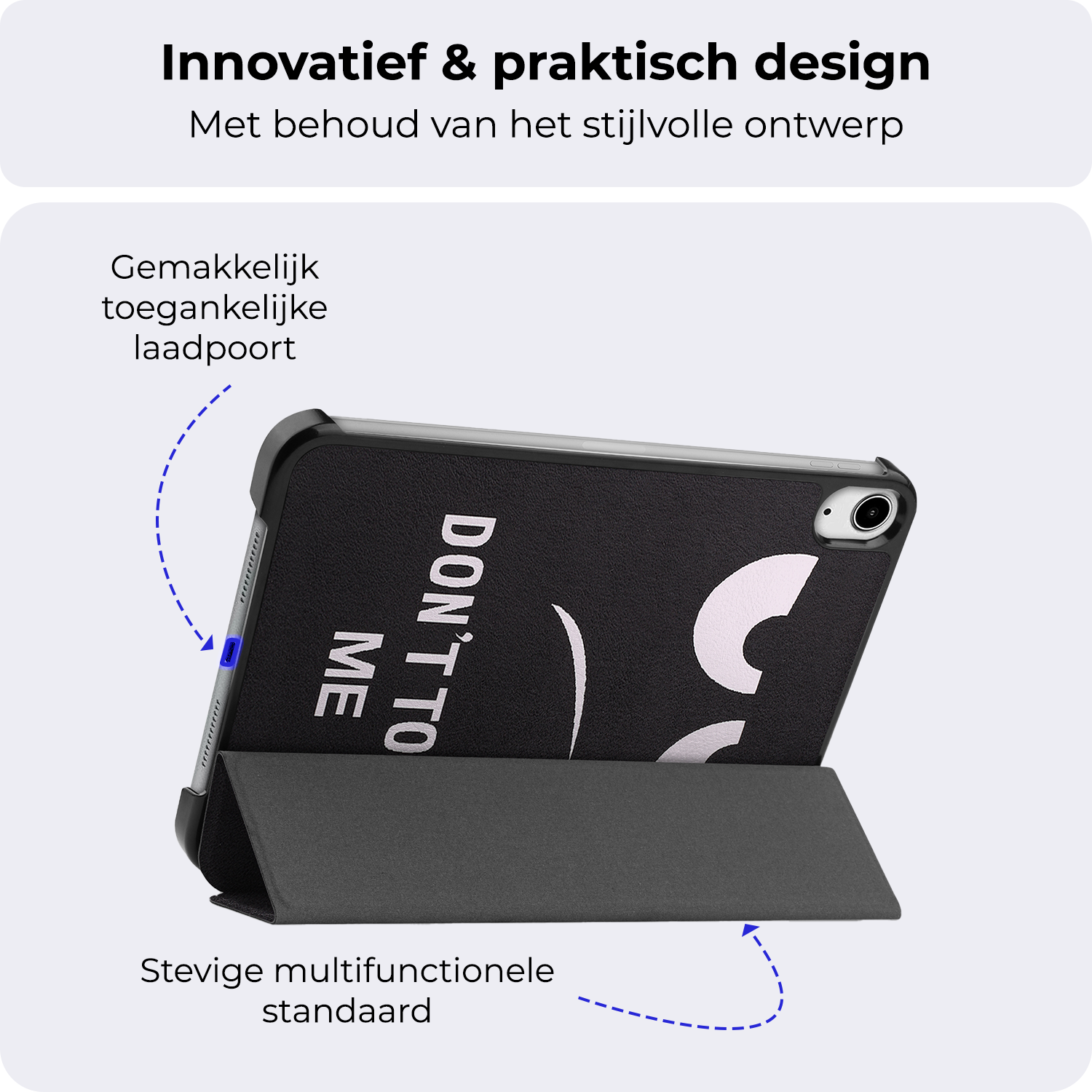 Maak je iPad Mini 7 compleet met deze functionele en stijlvolle Trifold Bookcase Hoes - don't touch me-patroon. **Bestel nu en ervaar de perfecte balans tussen bescherming en gebruiksgemak!**