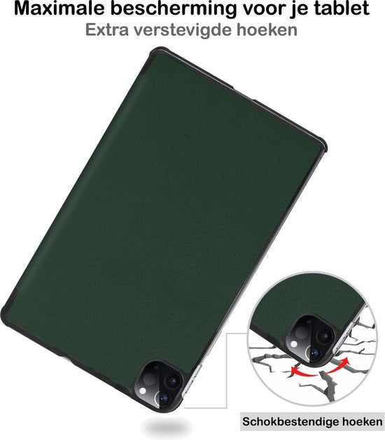 Maak je iPad Pro 2020 (11 inch) compleet met deze functionele en stijlvolle Trifold Bookcase Hoes - donkergroene. **Bestel nu en ervaar de perfecte balans tussen bescherming en gebruiksgemak!**