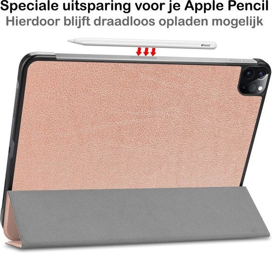 Maak je iPad Pro 2020 (11 inch) compleet met deze functionele en stijlvolle Trifold Bookcase Hoes - rosé gouden. **Bestel nu en ervaar de perfecte balans tussen bescherming en gebruiksgemak!**