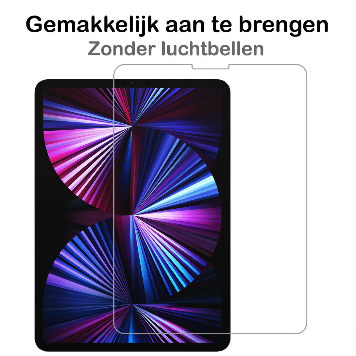 Deze screenprotector is eenvoudig aan te brengen zonder luchtbellen. De perfecte pasvorm zorgt ervoor dat de randen naadloos aansluiten op het scherm van je iPad Pro 2021 (11 inch). Verwijderen of vervangen kan zonder lijmresten achter te laten.