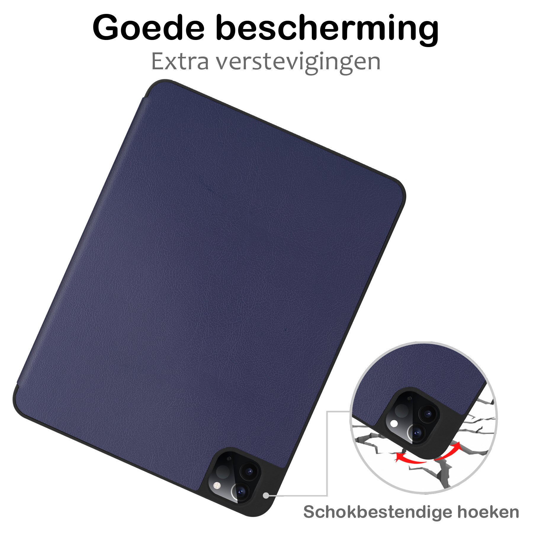 Maak je iPad Pro 2022 (12.9 inch) compleet met deze functionele en stijlvolle Trifold Bookcase Hoes - donkerblauwe. **Bestel nu en ervaar de perfecte balans tussen bescherming en gebruiksgemak!**