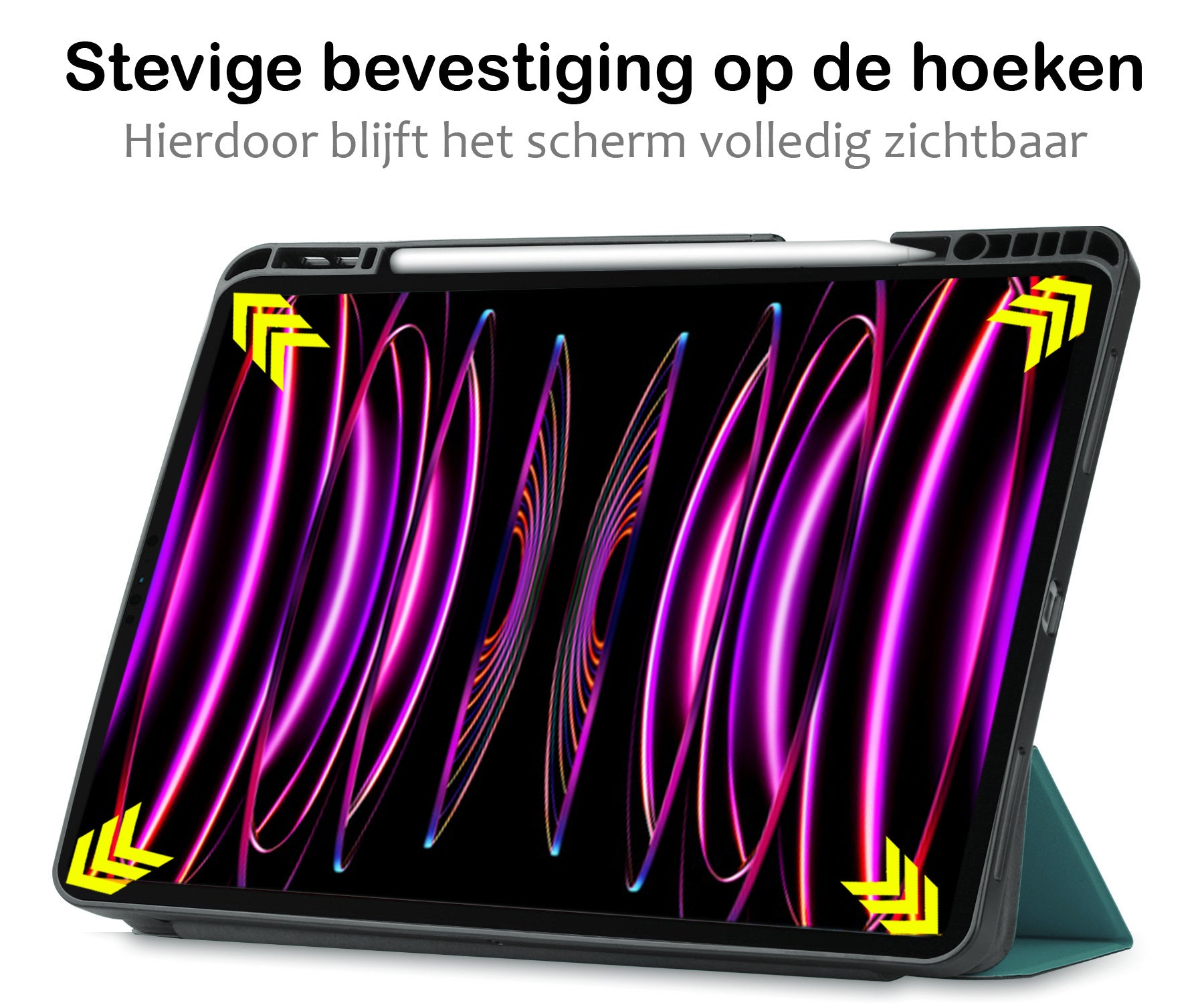 iPad Pro 2022 (12.9 inch) Trifold Bookcase Hoes met Penhouder voor Apple Pen - Donkergroen