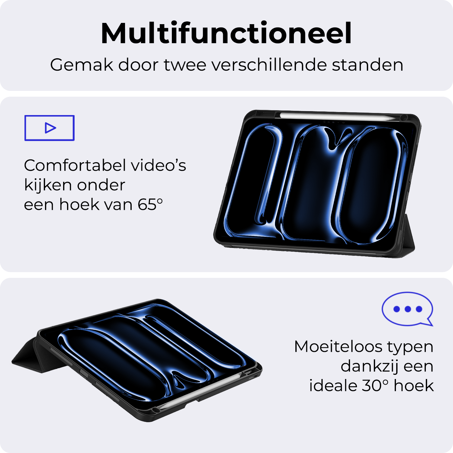 Flexibel gebruik met trifold standaard