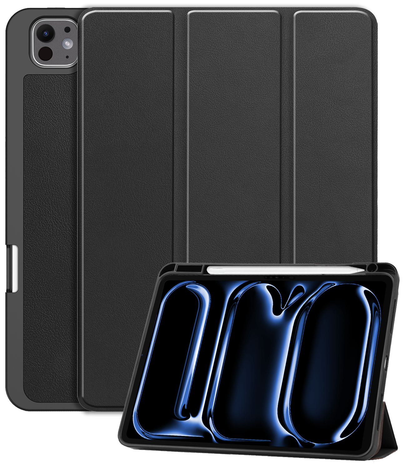 iPad Pro 2024 (11 inch) Trifold Bookcase Hoes met Penhouder voor Apple Pen - Zwart