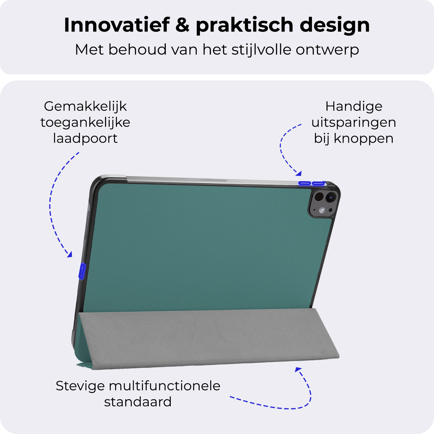 iPad Pro 2024 (13 inch) Trifold Bookcase Hoes - Donkergroen