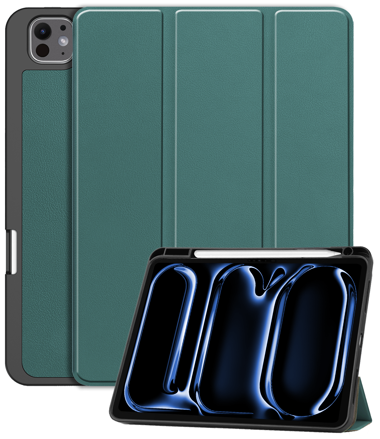iPad Pro 2024 (13 inch) Trifold Bookcase Hoes met Penhouder voor Apple Pen - Donkergroen