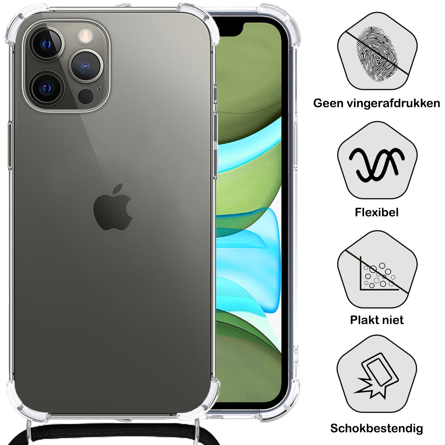 Maak je ervaring compleet met dit stevige en functionele shockproof hoesje met koord voor de iPhone 11 Pro Max. **Bestel nu en geniet van de perfecte balans tussen bescherming, gemak en stijl!**