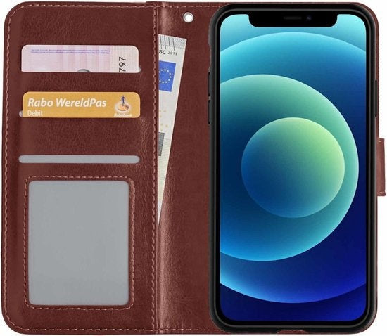iPhone 12 Hoesje Bookcase Cover Uitneembaar - Bruin