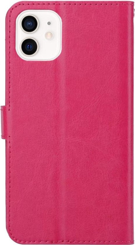 iPhone 12 Mini Hoesje Bookcase Cover met Kaarthouder - Donkerroze