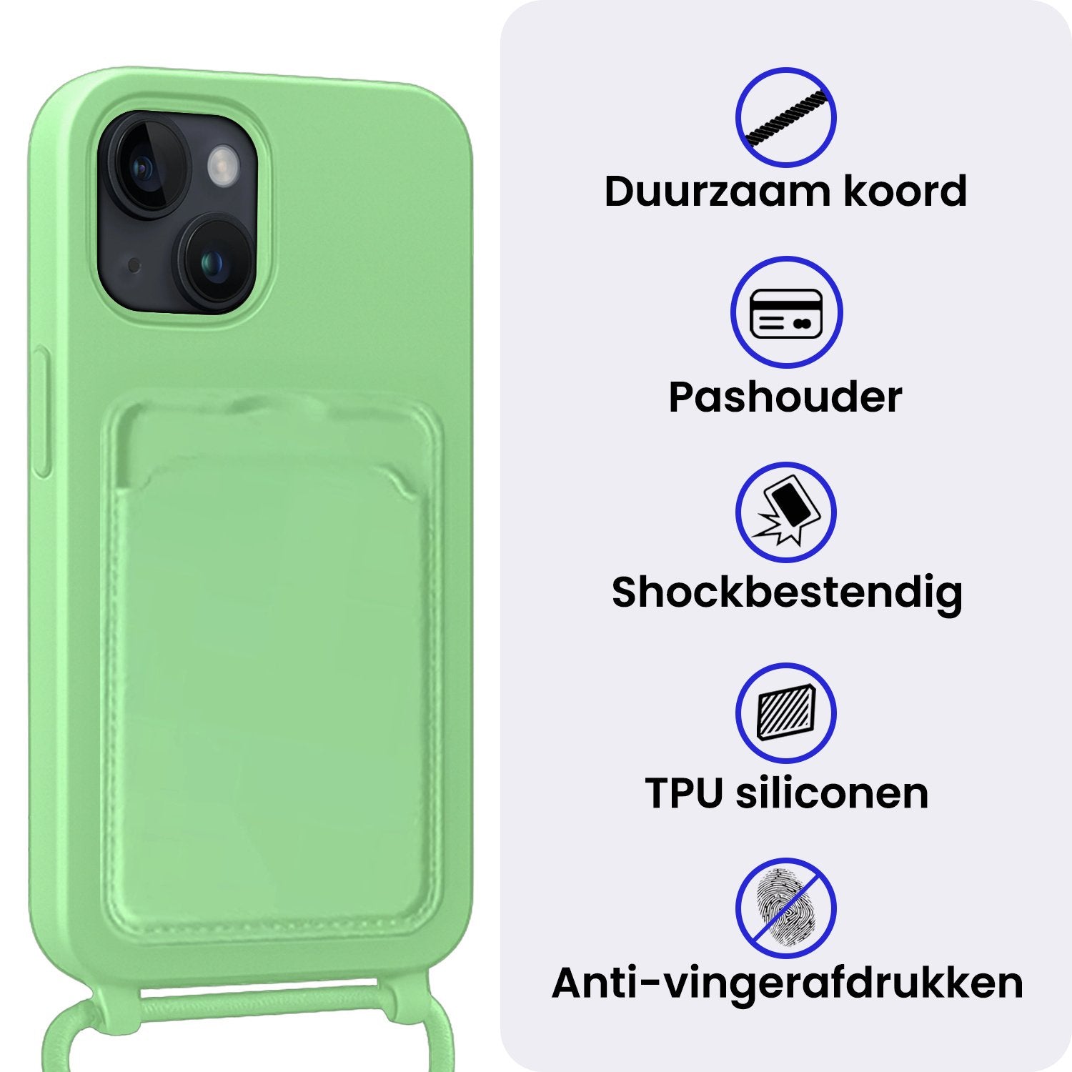 iPhone 13 Hoesje Met Telefoonkoord en Pasjeshouder Siliconen - Groen