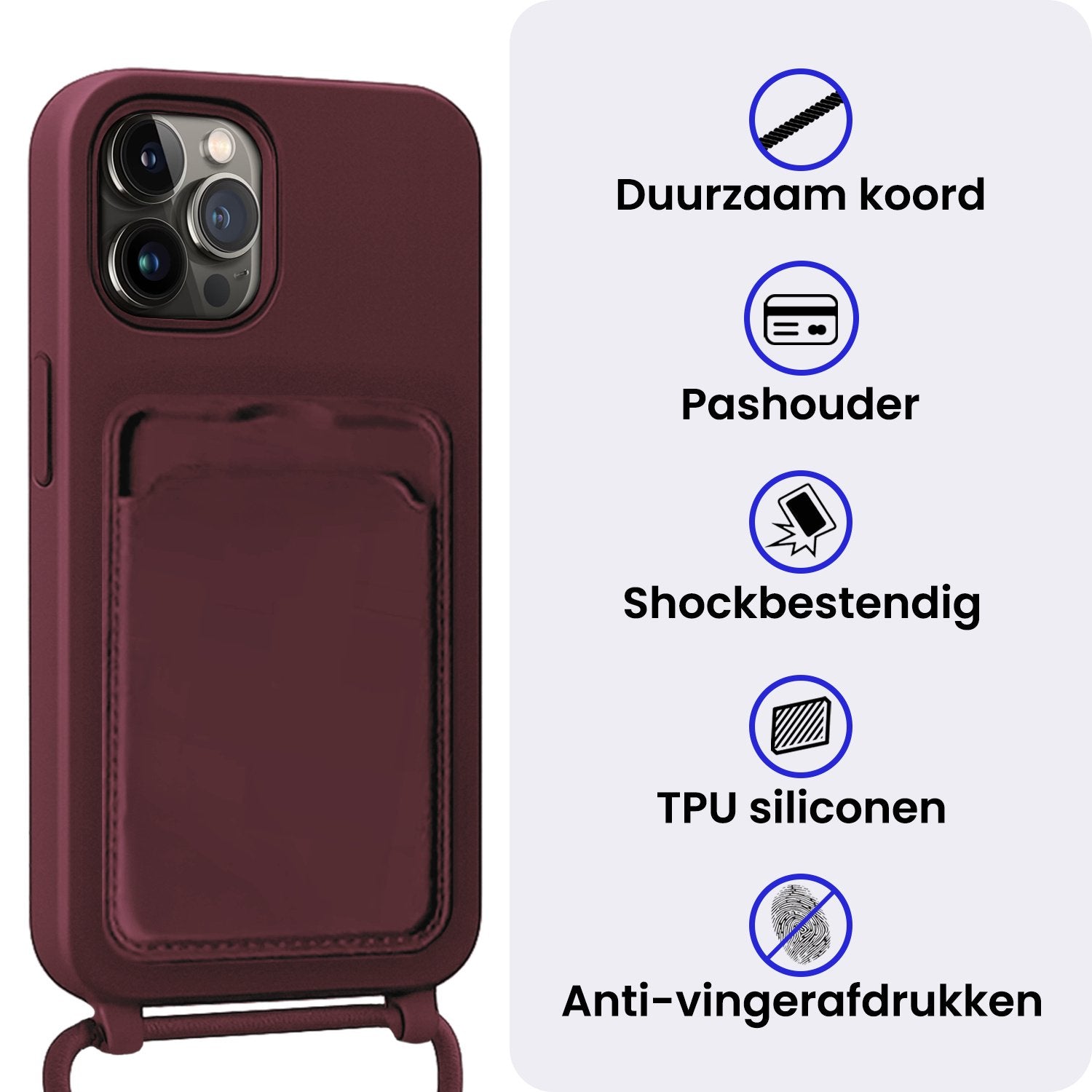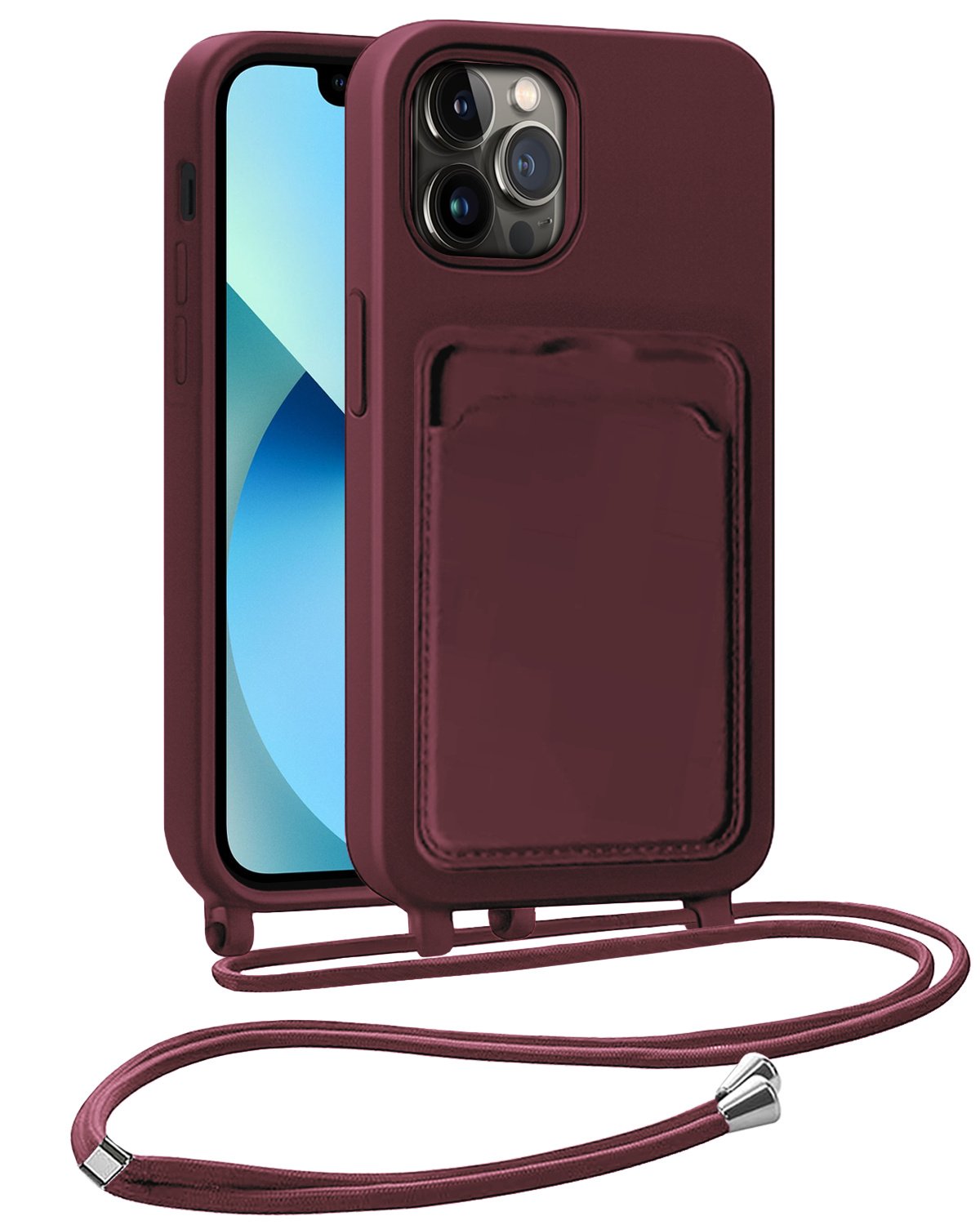 iPhone 13 Pro Max Hoesje Met Telefoonkoord en Pasjeshouder Siliconen - Aubergine