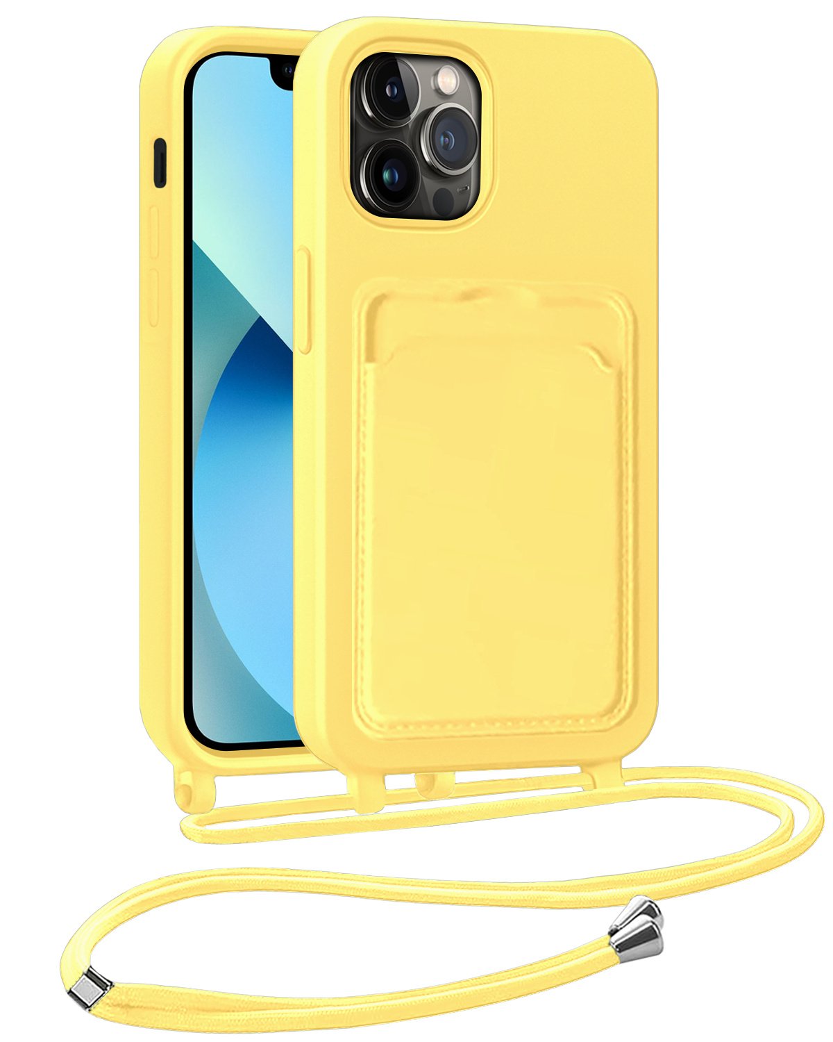 iPhone 13 Pro Max Hoesje Met Telefoonkoord en Pasjeshouder Siliconen - Geel