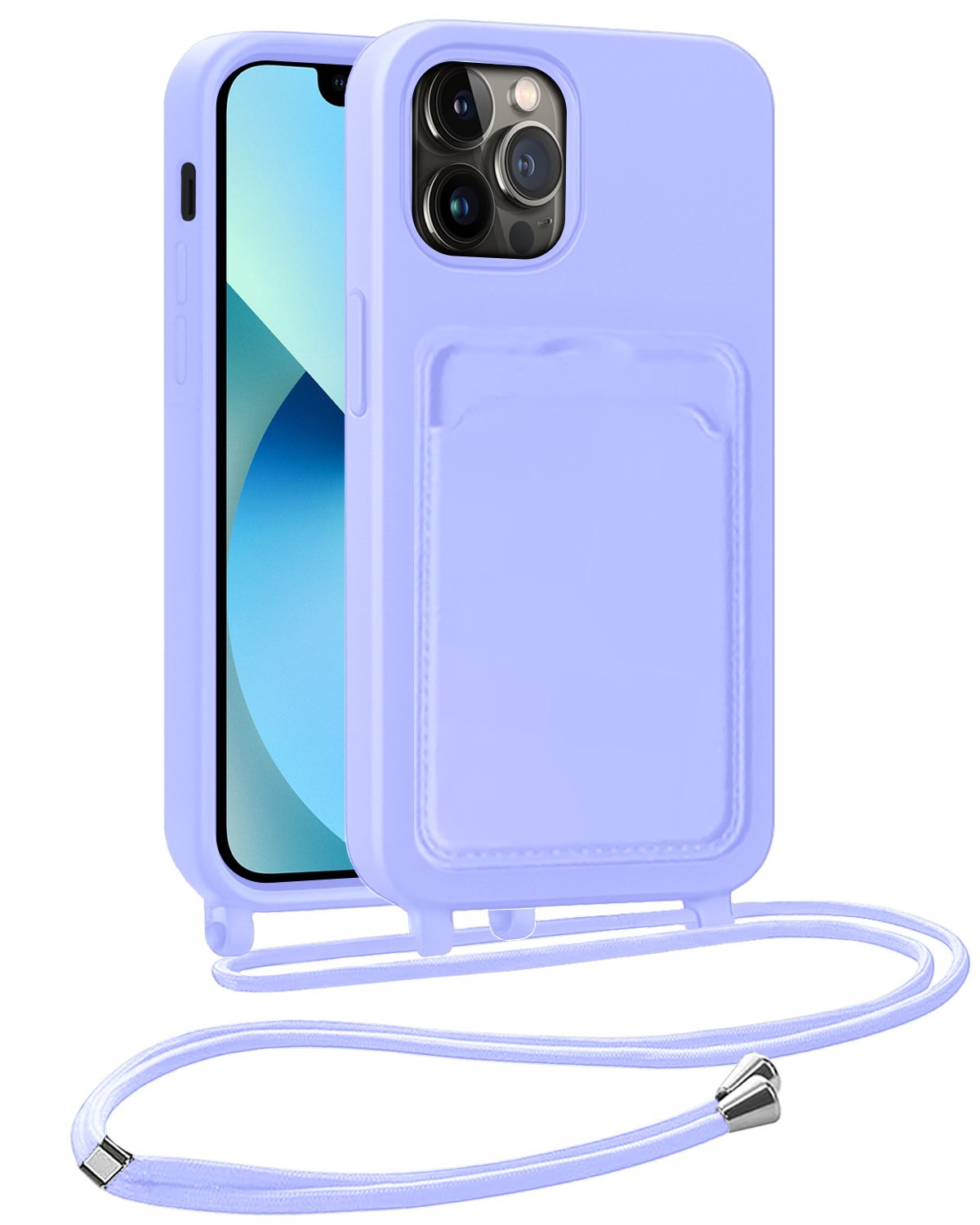 iPhone 13 Pro Max Hoesje Met Telefoonkoord en Pasjeshouder Siliconen - Lila