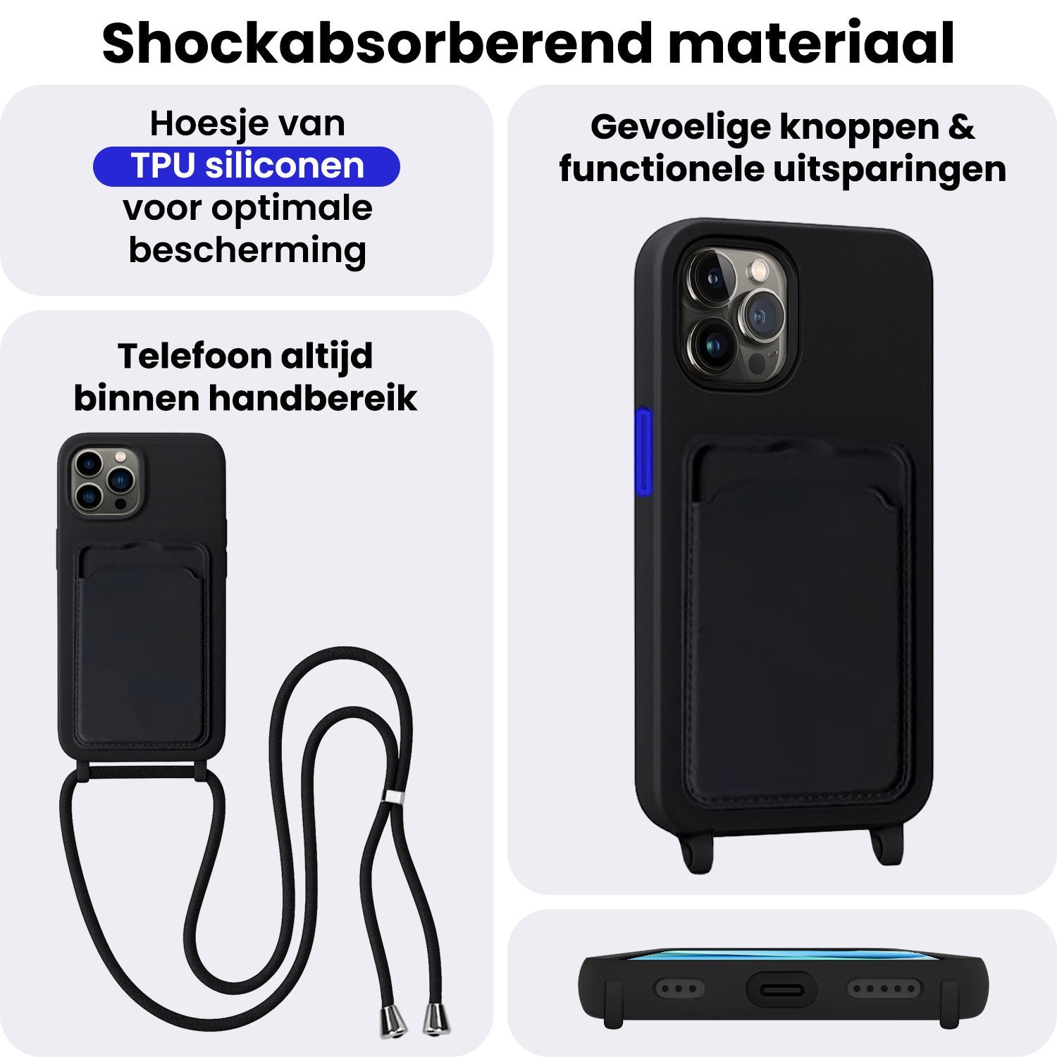 iPhone 13 Pro Max Hoesje Met Telefoonkoord en Pasjeshouder Siliconen - Zwart