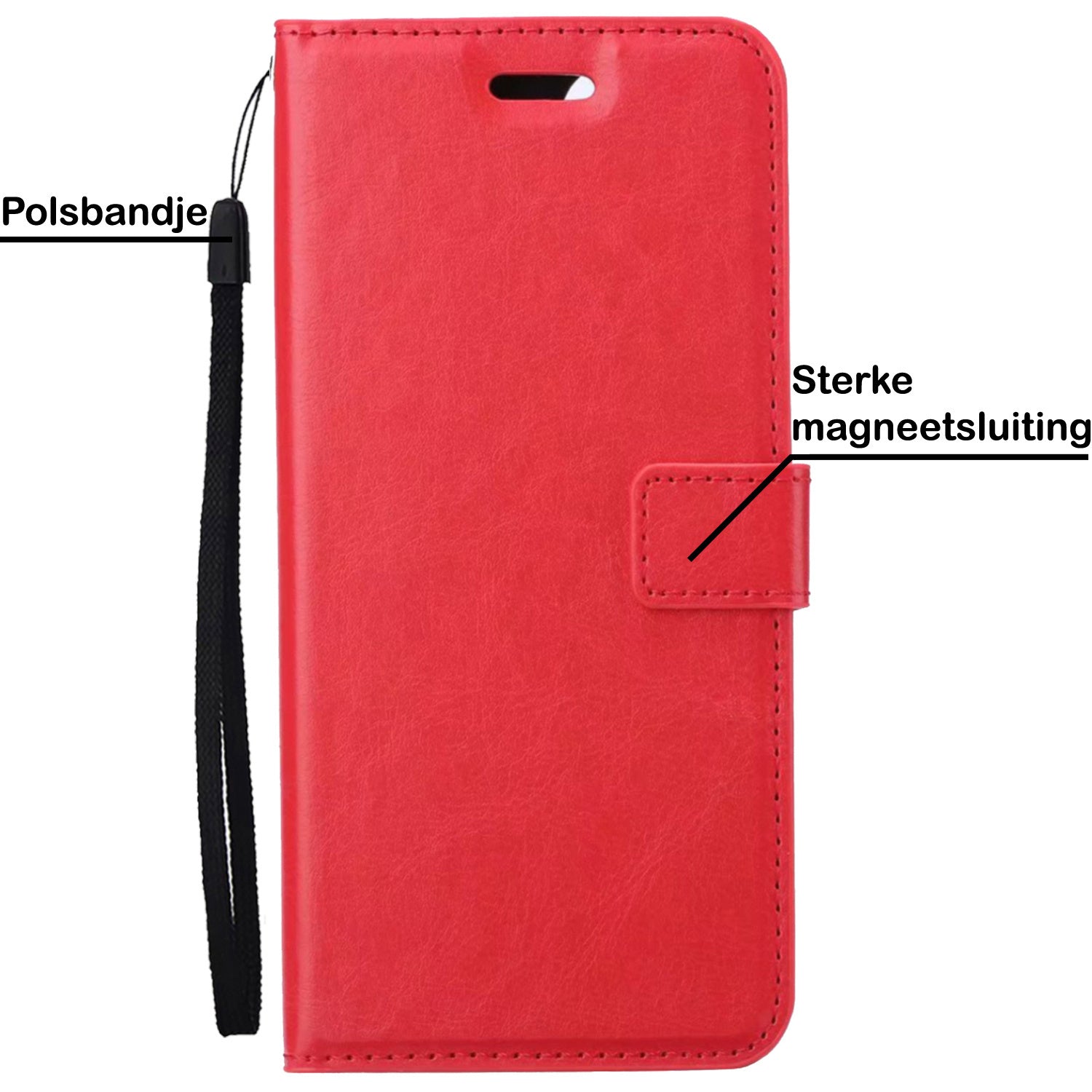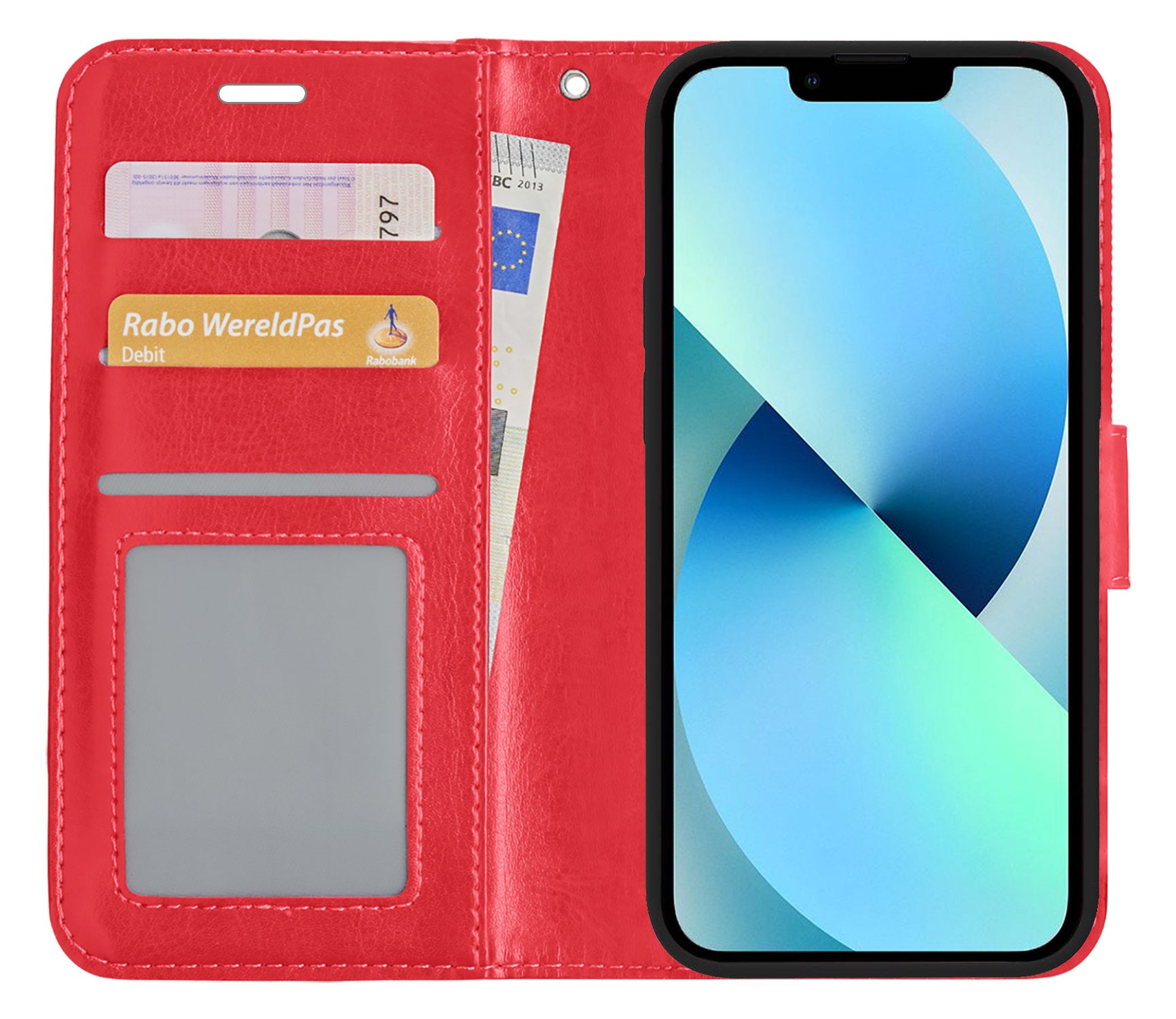 iPhone 14 Hoesje Bookcase Cover met Kaarthouder - Rood