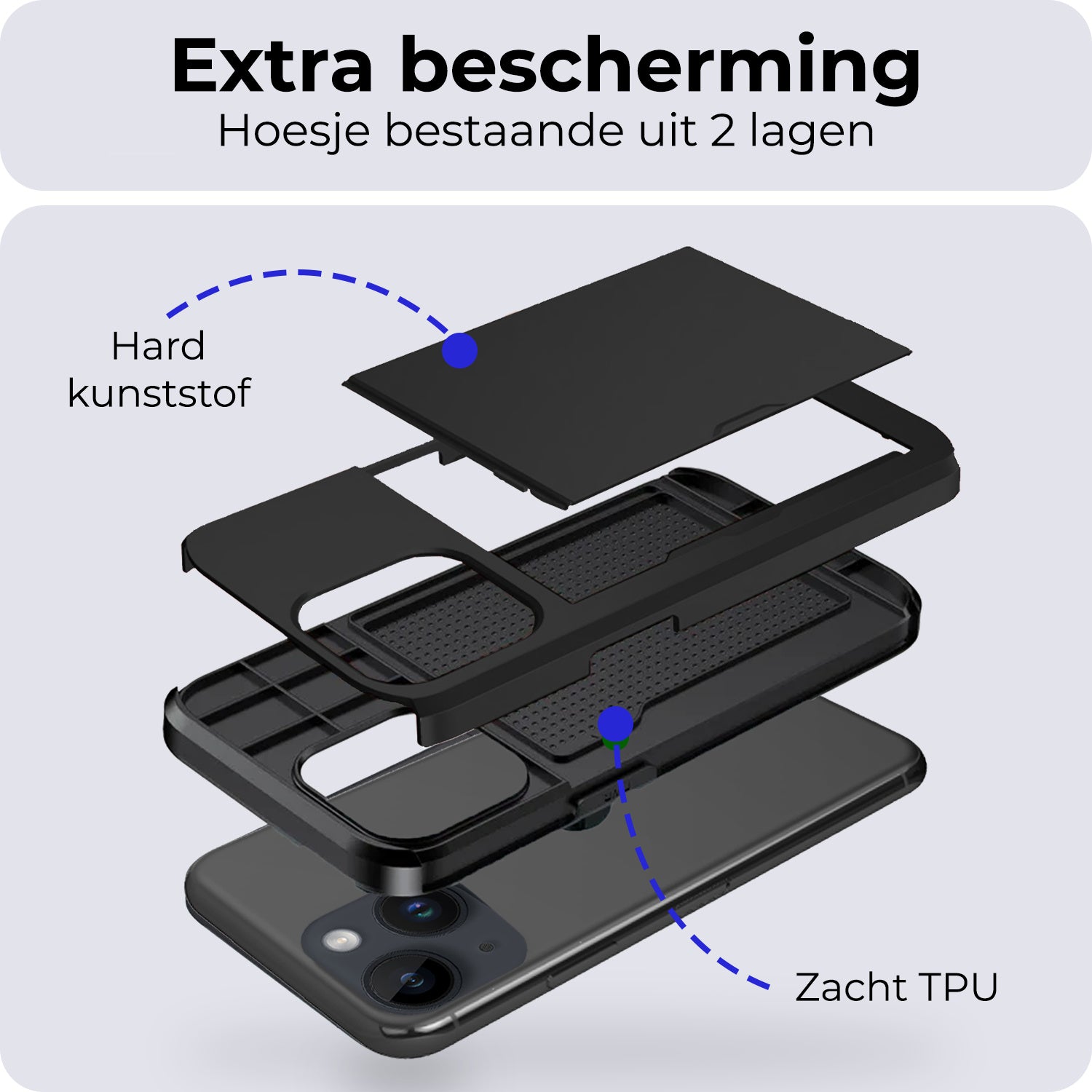 iPhone 14 Hoesje Kaarthouder Hard Case Shockproof - Zwart